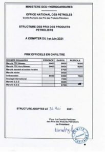 Ci-dessous, copie du tableau des prix des produits pétroliers, pratiqués en Guinée, à la date de ce 1er Juin 2021