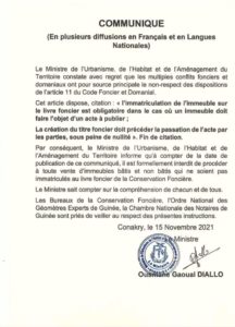 Le ministère de l’Hurbanisme, de l’Habitat et de l’Aménagement du territoire vient de prendre une décision concernant la vente des immeubles en Guinée.