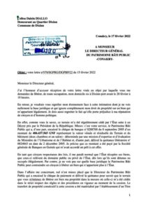 Malgré qu’il va quitter, Cellou Dalein Diallo ne souhaite pas lâcher facilement. Après avoir expliqué à travers une conférence de presse les procédures par lesquelles il est passé pour avoir le terrain et y construire à Dixinn port, l’ancien premier ministre sous le règne de Lansana Conté vient d’adresser un courrier au Directeur Général du Patrimoine Bâti public.