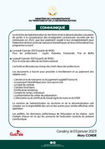 Dans un communiqué publié ce mardi 3 janvier, le ministre de l’administration du territoire et de la décentralisation, Mory Condé informe les enseignants contractuels du du paiement de leur prime.