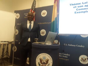 Cette rencontre qui a réuni les hommes de médias dans la bibliothèque Thurgood Marshall dudit Ambassade avait pour conférencier le juge Mohamed Diawara, Président de l’Association des Magistrats de Guinée(AMG) et la modération a été assurée par Mouctar Bah, journaliste et correspondants de RFI en Guinée.