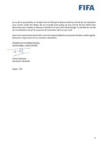 C’est un communiqué du FIFA qui vient de nous informer. Le mandat du comité de normalisation(CONOR)vient d’être prorogé par le Bureau du Conseil de la FIFA.