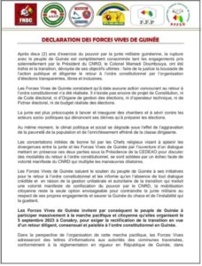 Guineelive.com vous propose l’integralité du communiqué des forces vives de Guinée.