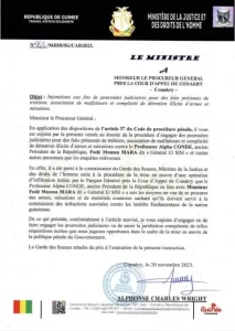Il a instruit le procureur général près la Cour d’Appel de Conakry de les poursuivre ces deux pour des faits cités ci-haut.