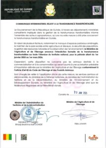 Dans un communiqué conjoint, les ministres de l’Administration du territoire et de l’Agriculture, Ibrahima Kalil Condé et Félix Lamah, ont justifié cette décision par plusieurs facteurs, notamment le manque d’espaces pastoraux aménagés, la sécurité des populations et la nécessité d’éviter les conflits entre agriculteurs et éleveurs.