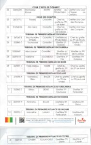 Cette décision vise à renforcer l’organisation et le fonctionnement des juridictions guinéennes en dotant les greffes de cadres compétents et qualifiés. Les nouveaux responsables auront pour mission d’assurer la bonne gestion des dossiers judiciaires, d’améliorer le service aux justiciables et de garantir une meilleure administration de la justice.