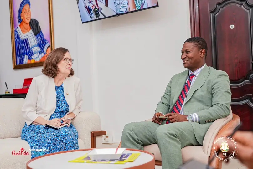 Conakry, le jeudi 14 août 2025 – Le ministre de l’Énergie, Namori Camara, a reçu en audience Mme Mary E. Daschbach, chargée d’affaires de l’ambassade des États-Unis en Guinée.